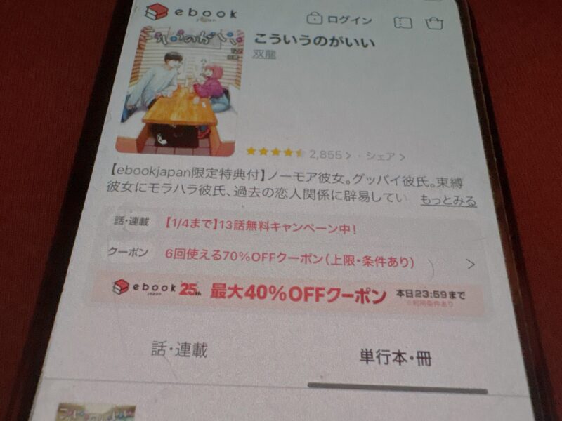 キャンペーンを利用すると、こういうのがいいを割安にまとめて購入したり、1巻だけ無料で購入することが可能です。