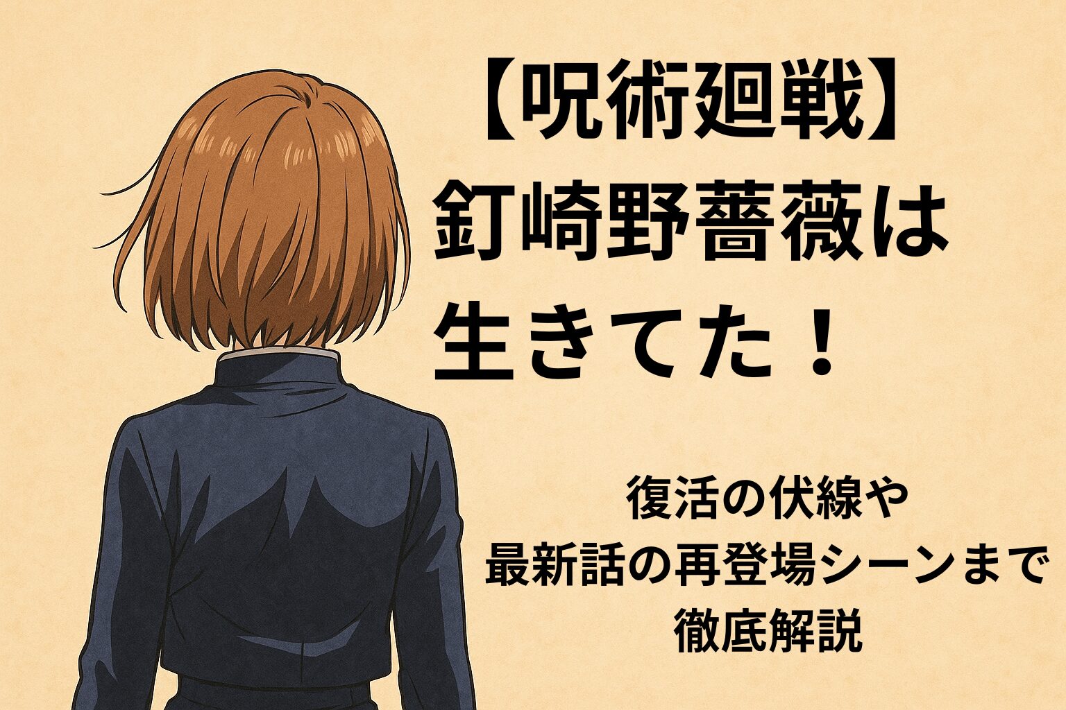 この記事では、釘崎野薔薇の生死に関する公式情報と、ネット上で広まっている「復活説」の真相について、徹底的に解説していきます。この記事を読めば、釘崎野薔薇の現状についての全てが分かります。
