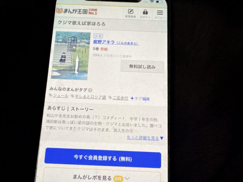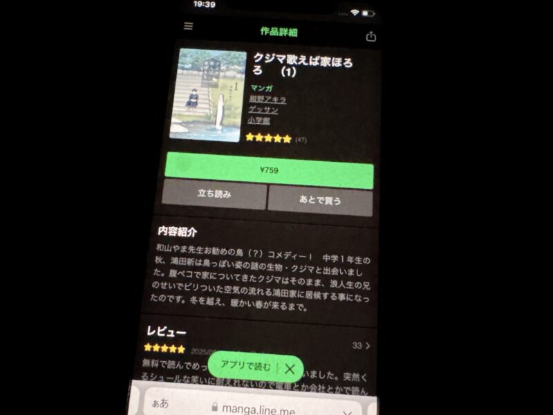 ここからは、クジマ歌えば家ほろろの漫画が無料で読めるアプリを紹介します。