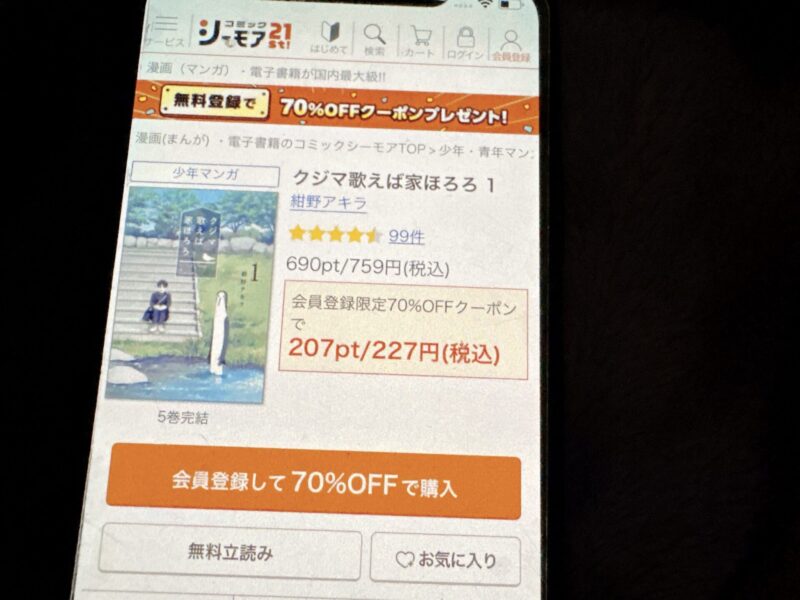 初回クーポンと組み合わせることでクジマ歌えば家ほろろ全巻をよりお得に購入することもできるので、気になる人は公式サイトをチェックしてみましょう。