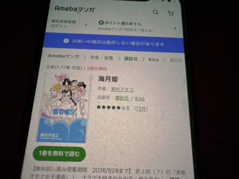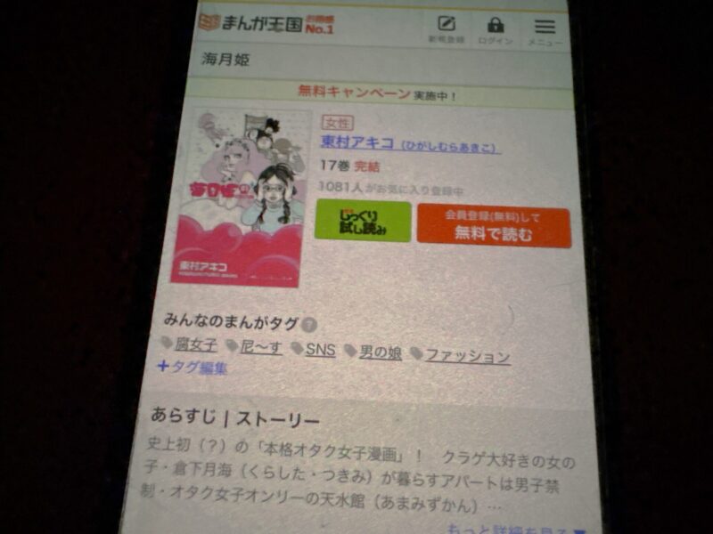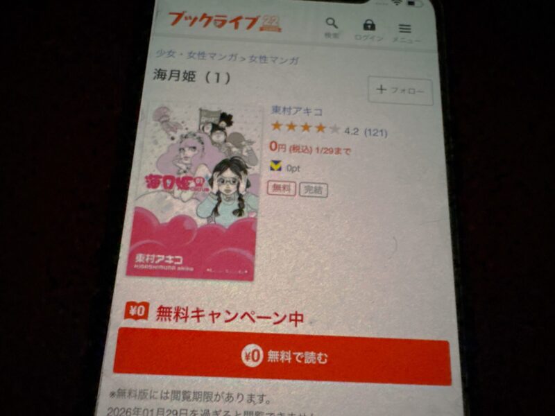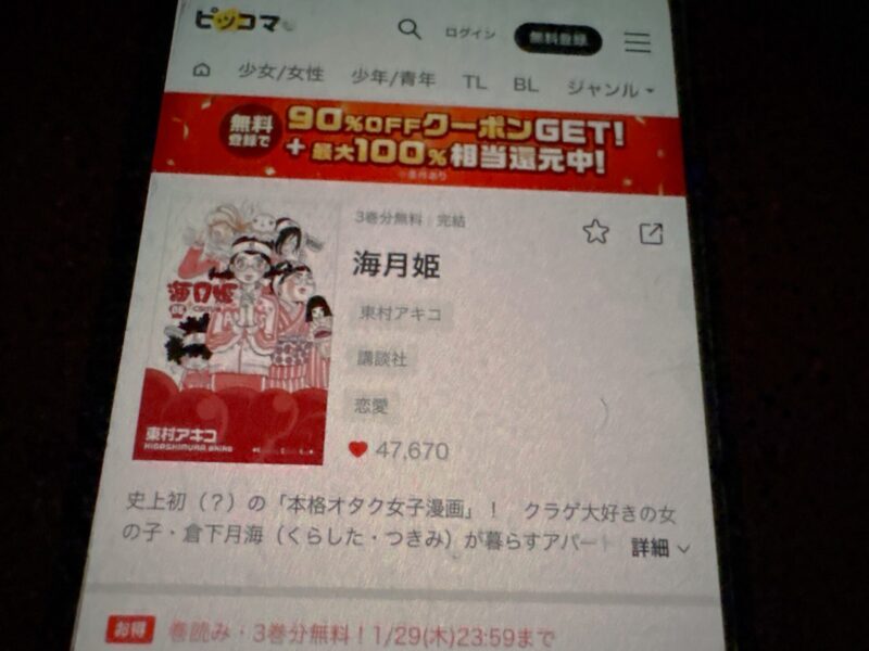 キャンペーンを利用することで一部の巻は無料で読めるため、お得に海月姫漫画を全巻読むためには利用しましょう