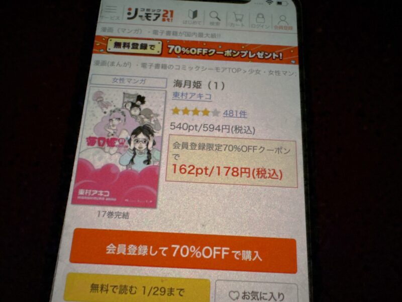 また、ブックライブは会員登録するだけで1冊限定の70%オフクーポンがもらえます