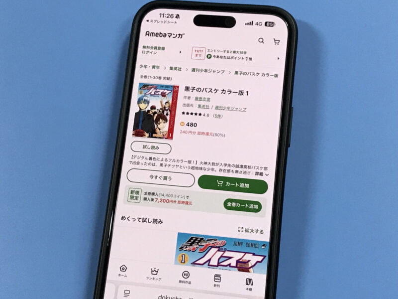 キャンペーンを利用することで一部の巻は無料で読めるため、お得に黒子のバスケ漫画を全巻読むためには利用しましょう。