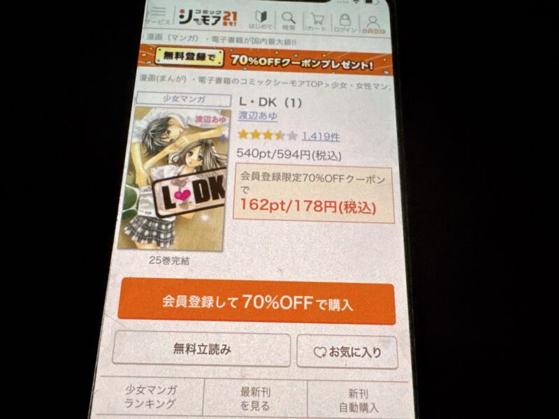 また、ブックライブは会員登録するだけで1冊限定の70%オフクーポンがもらえます。
