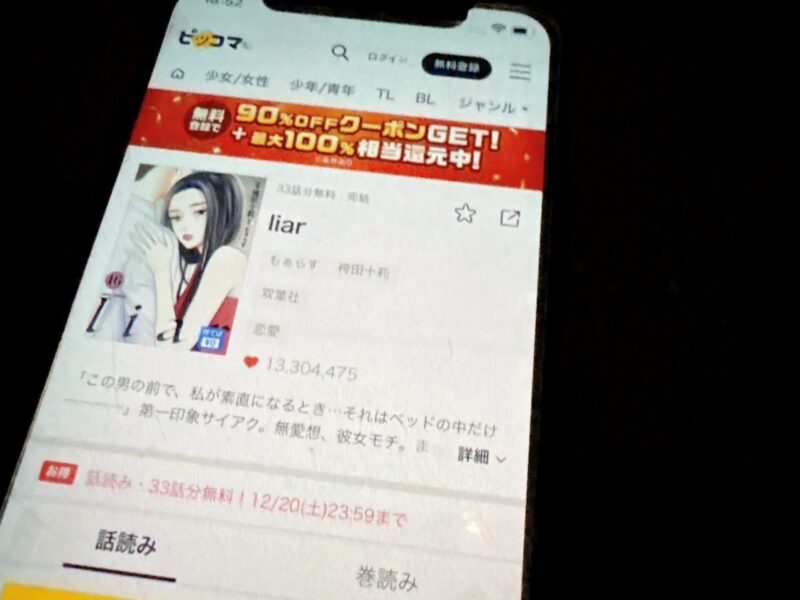 ここからは、liarの漫画が無料で読めるアプリを紹介します。
