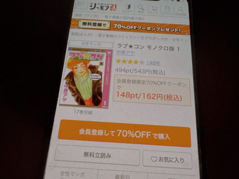 また、ブックライブは会員登録するだけで1冊限定の70%オフクーポンがもらえます。