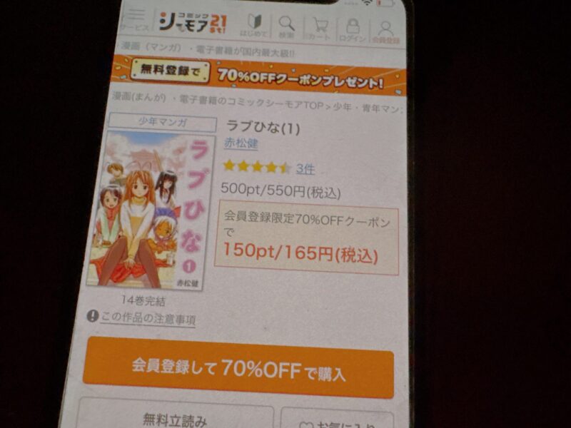 また、ブックライブは会員登録するだけで1冊限定の70%オフクーポンがもらえます