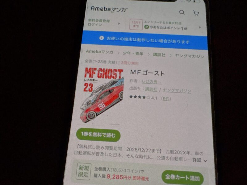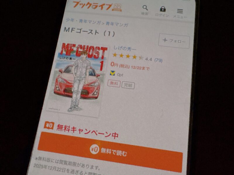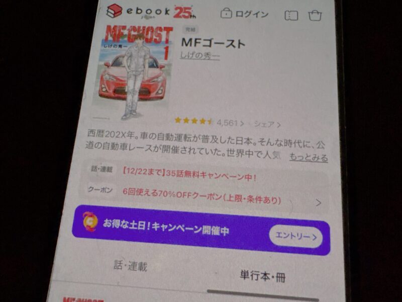 キャンペーンを利用することで一部の巻は無料で読めるため、お得にMFゴースト漫画を全巻読むためには利用しましょう。
