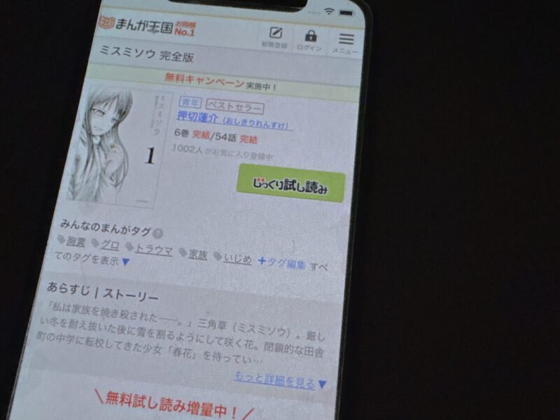 ミスミソウが、無料で読める漫画アプリを紹介します。