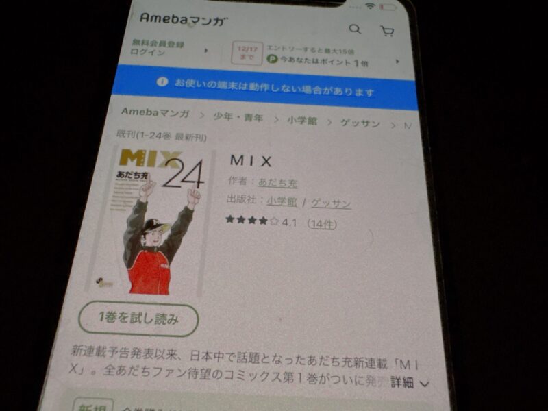 キャンペーンを利用することで一部の巻は無料で読めるため、お得にMIX漫画を全巻読むためには利用しましょう。