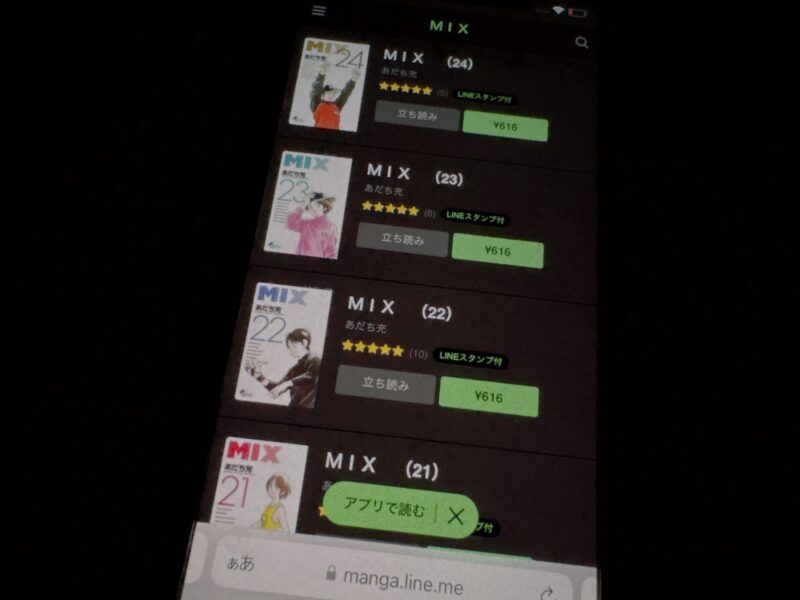 LINEが運営する「LINEマンガ」では、MIXを24巻までを有料配信しています。