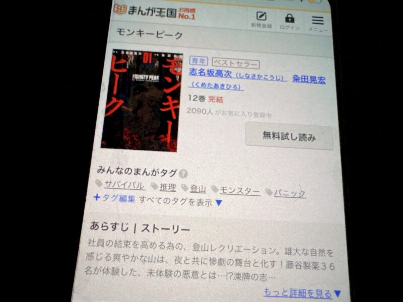 モンキーピークはまるごと無料では読めませんが、試し読みはできます。