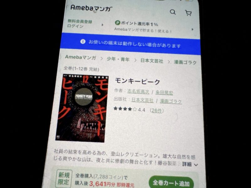 キャンペーンを利用することで一部の巻は無料で読めるため、お得にモンキーピーク漫画を全巻読むためには利用しましょう。