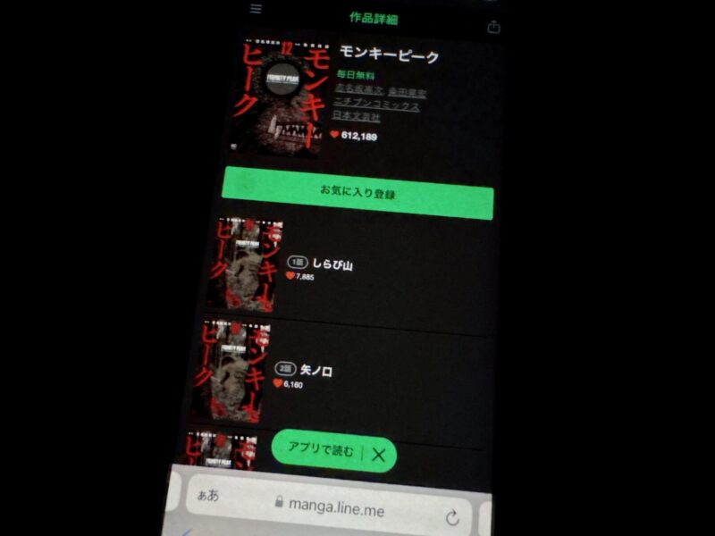 ここからは、モンキーピークの漫画が無料で読めるアプリを紹介します。