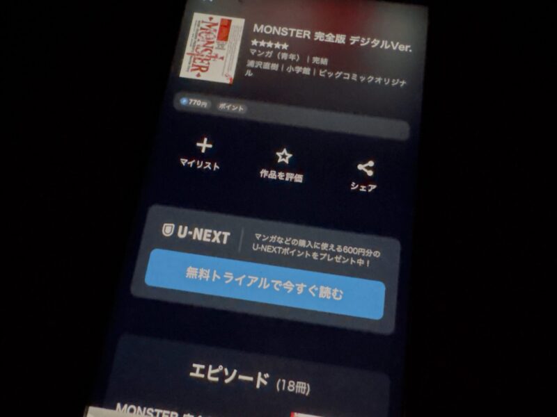 U-NEXTの31日間の無料トライアルを利用すれば、600円分のポイントが配布されるため、MONSTER 完全版の最終巻をお得に購入するために使用できます。