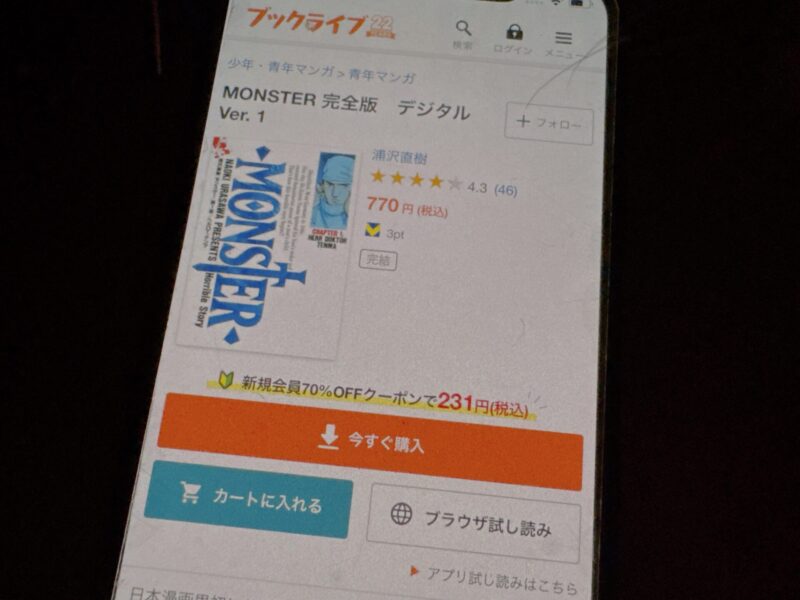無料でMONSTER 完全版をブックライブで読む
