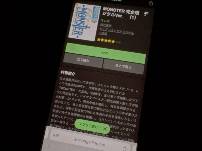 ここからは、MONSTER 完全版の漫画が無料で読めるアプリを紹介します。
