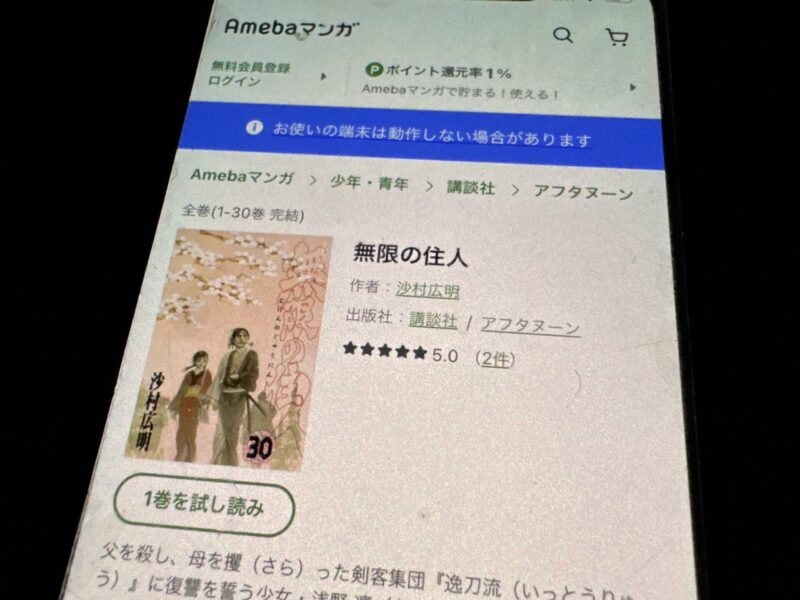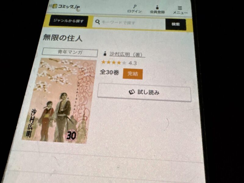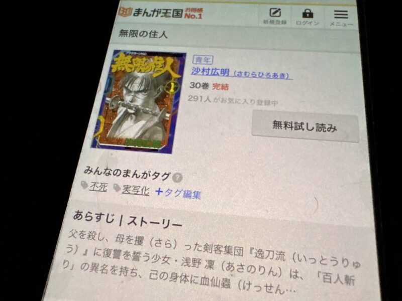 無限の住人はまるごと無料では読めませんが、試し読みはできます。