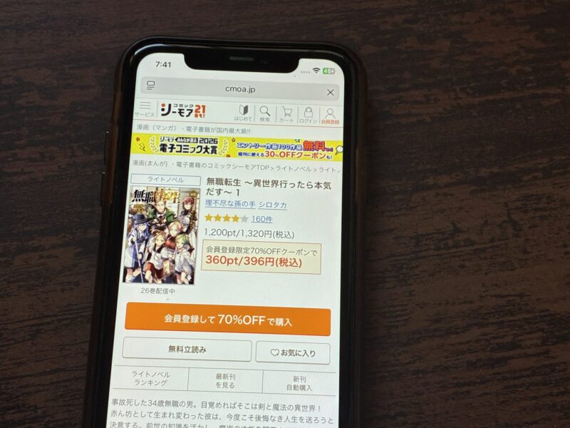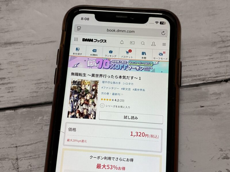 たとえば『無職転生』1巻(税込1,320円)を購入する場合、クーポン利用で820円(税込)で購入できます。