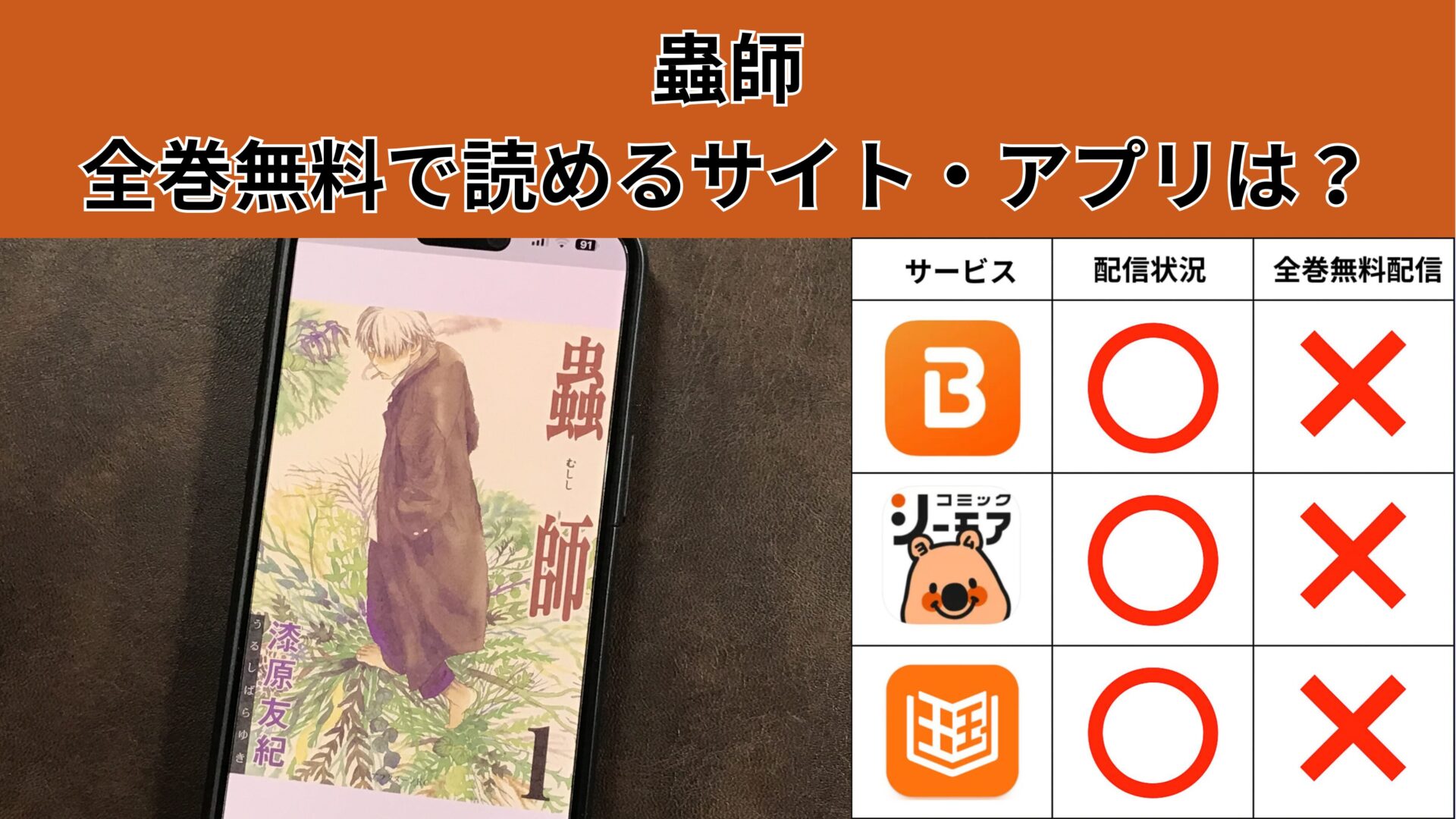 ここからは、蟲師の漫画が無料で読めるアプリを紹介します。