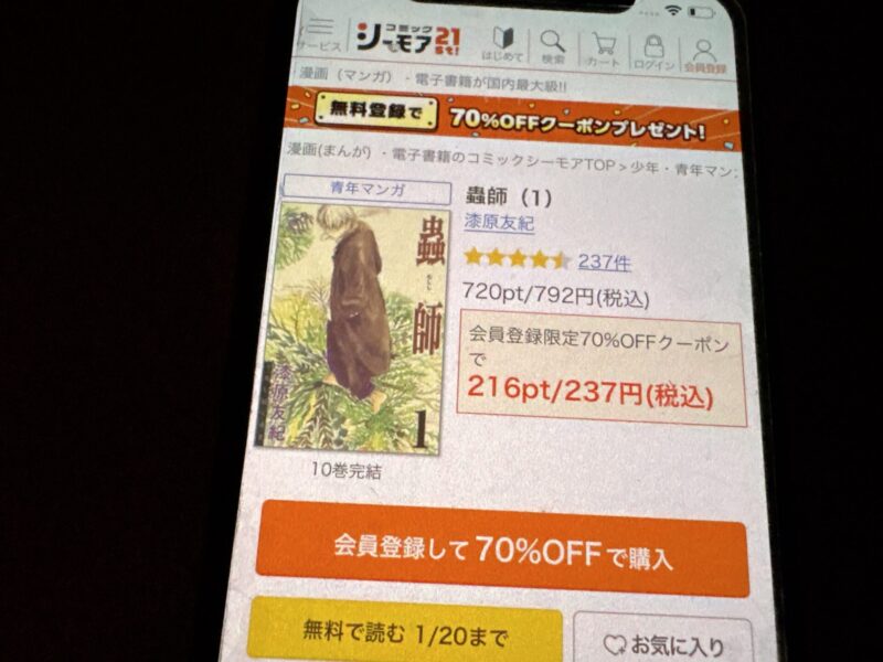 無料で蟲師をコミックシーモアで読む