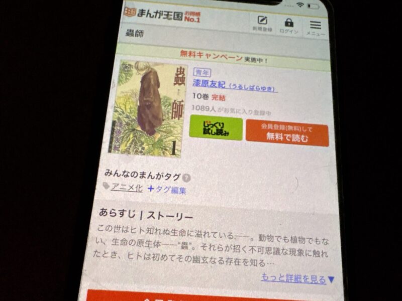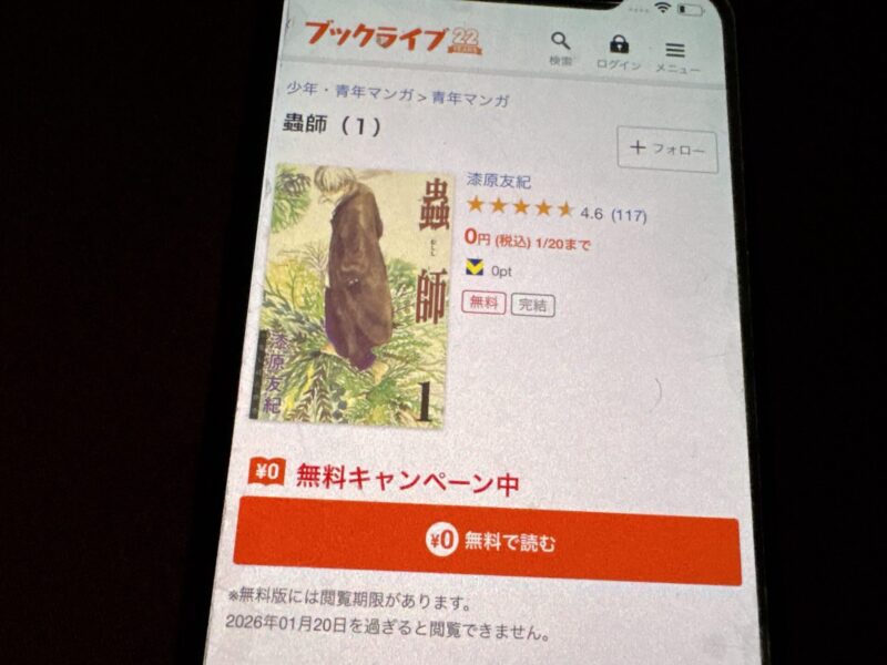 キャンペーンを利用することで一部の巻は無料で読めるため、お得に蟲師漫画を全巻読むためには利用しましょう。