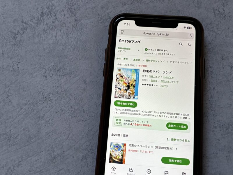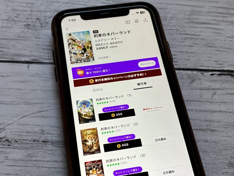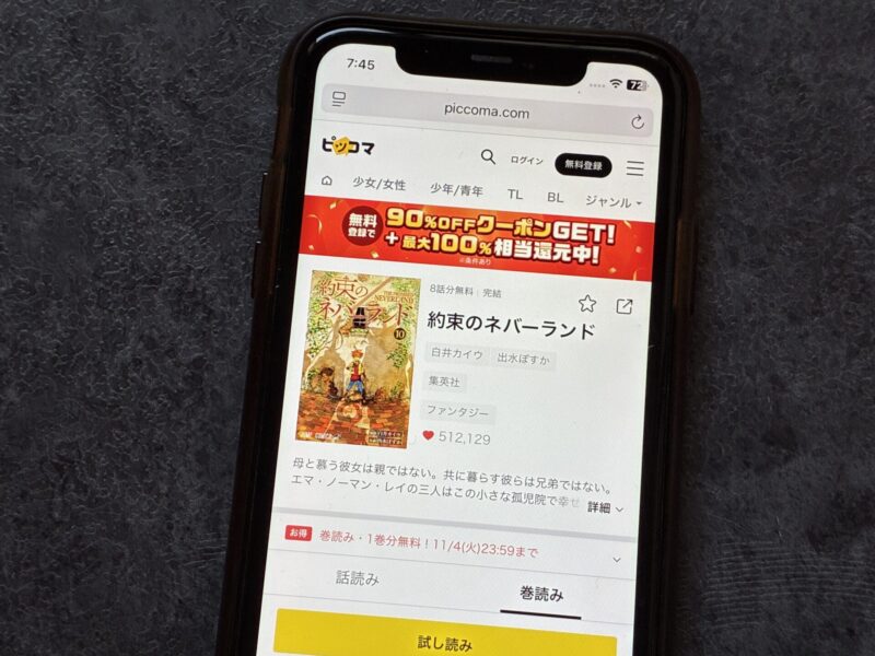 キャンペーンを利用することで一部の巻は無料で読めるため、お得に約束のネバーランド漫画を全巻読むためには利用しましょう。