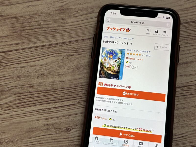 キャンペーンを利用すると、約束のネバーランドを割安にまとめて購入したり、1巻だけ無料で購入することが可能です。
