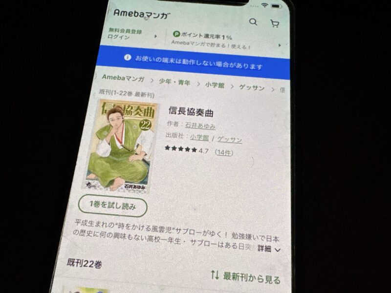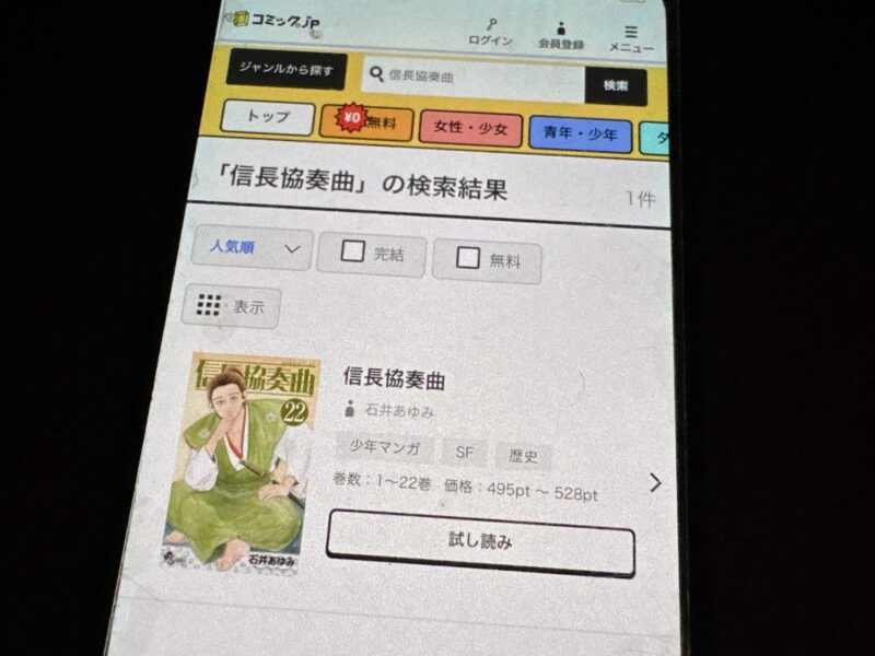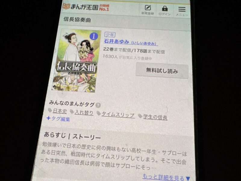 信長協奏曲はまるごと無料では読めませんが、試し読みはできます。