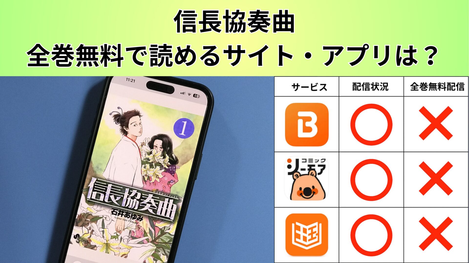 この記事では、最新の信長協奏曲無料キャンペーンや電子書籍の割引情報などの最新情報を発信しています。