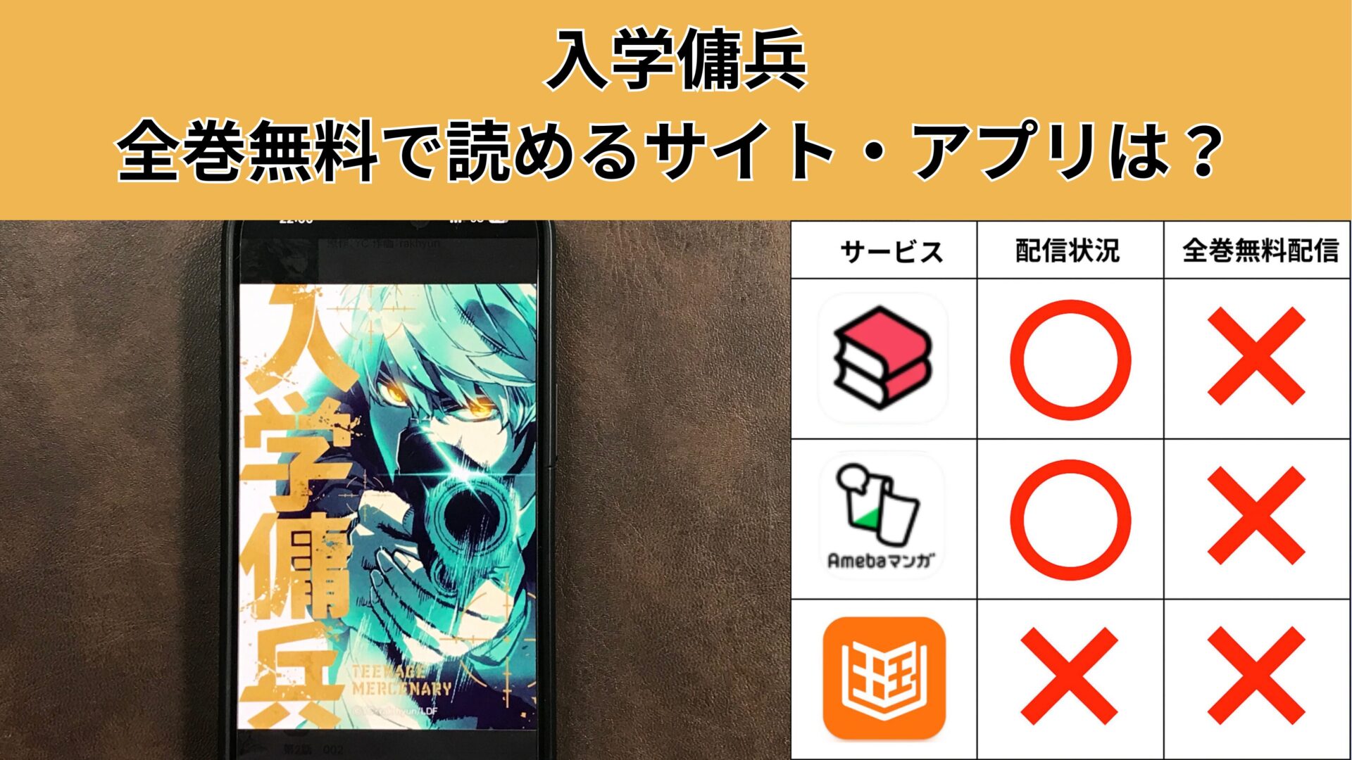 ここからは、入学傭兵の漫画が無料で読めるアプリを紹介します。