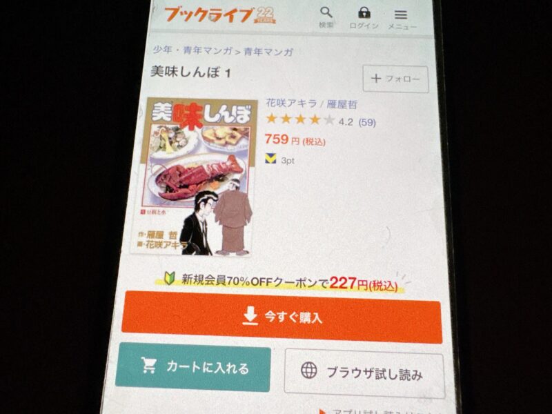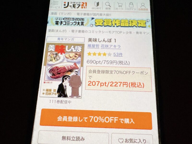 キャンペーンを利用すると、美味しんぼを割安にまとめて購入したり、1巻だけ無料で購入することが可能です