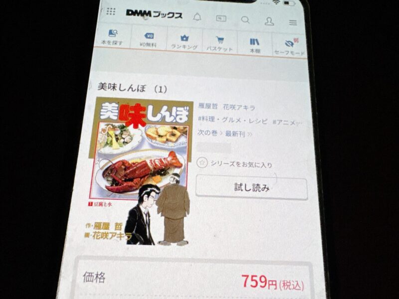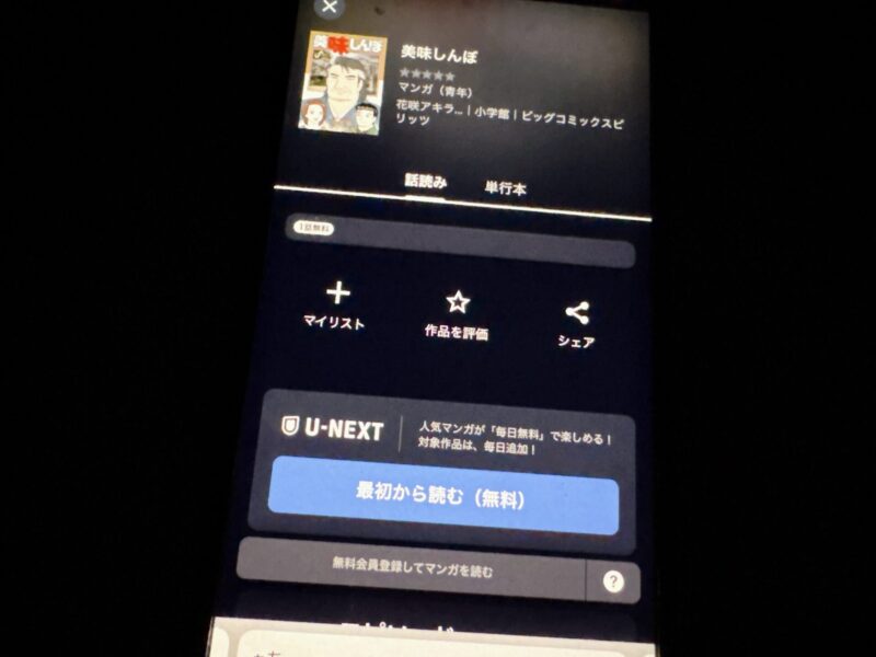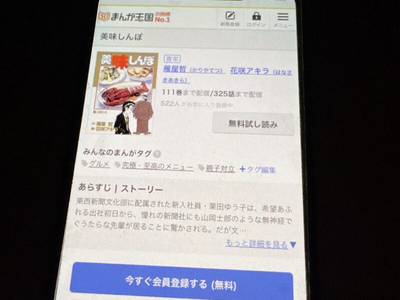 美味しんぼはまるごと無料では読めませんが、試し読みはできます。