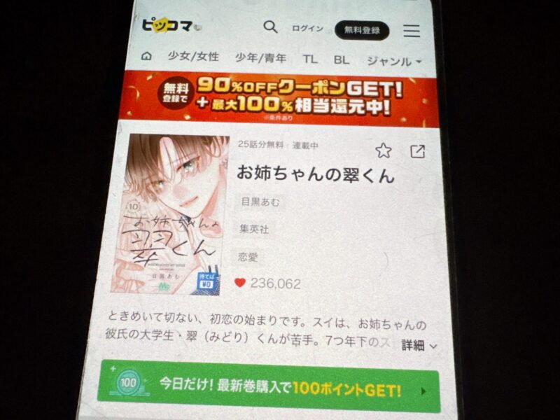 ここからは、お姉ちゃんの翠くんの漫画が無料で読めるアプリを紹介します。