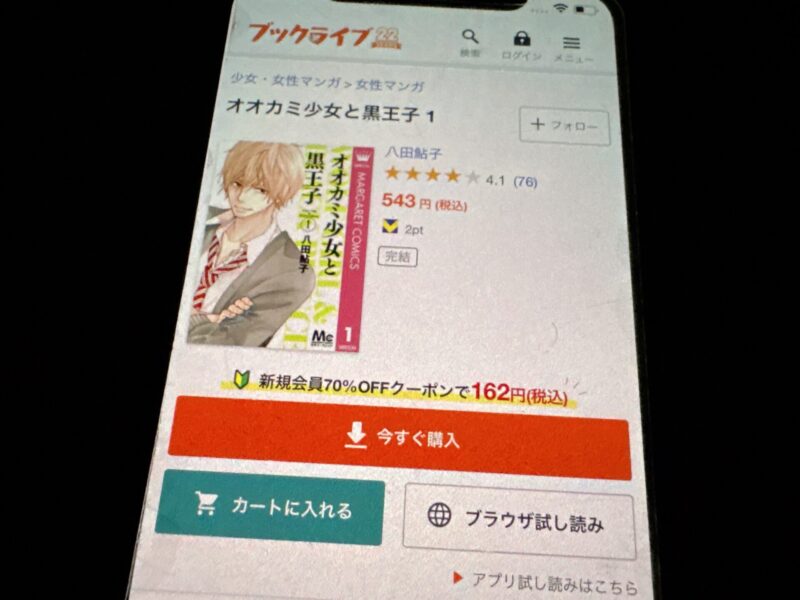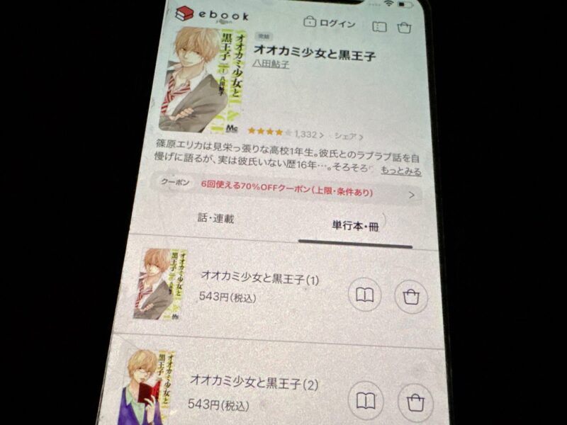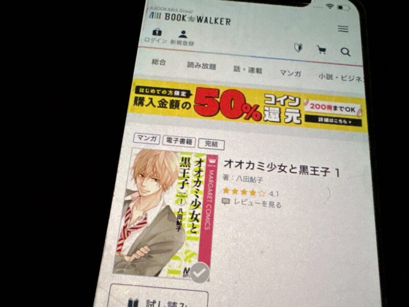 キャンペーンを利用すると、オオカミ少女と黒王子を割安にまとめて購入したり、1巻だけ無料で購入することが可能です。