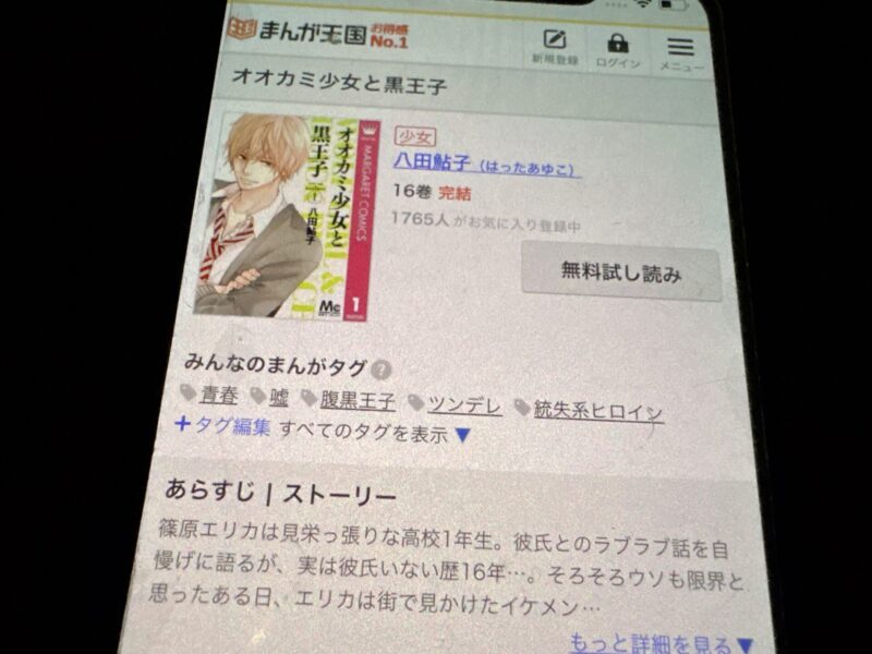 無料でオオカミ少女と黒王子をまんが王国で読む