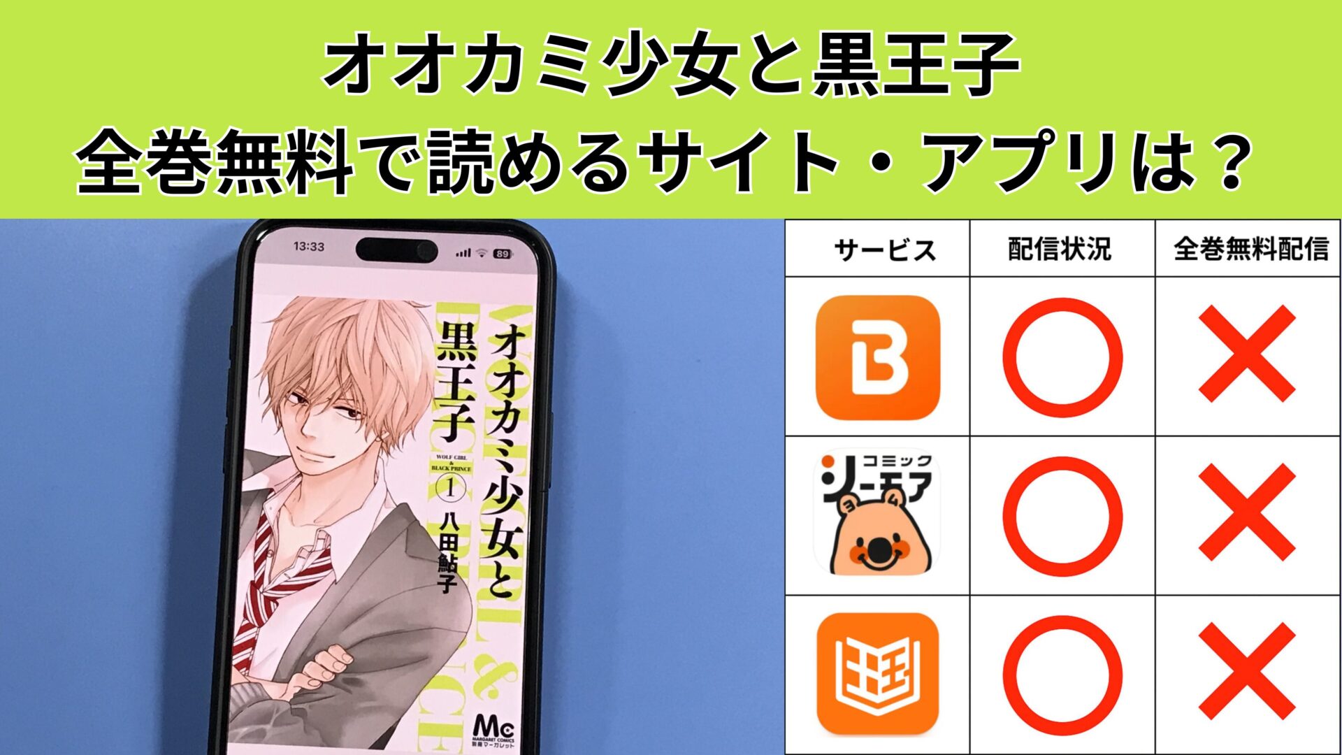 ここからは、オオカミ少女と黒王子の漫画が無料で読めるアプリを紹介します。