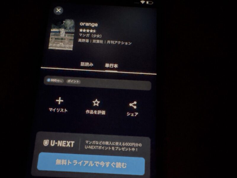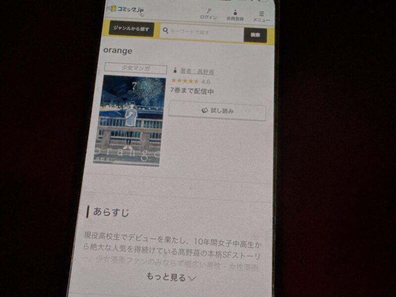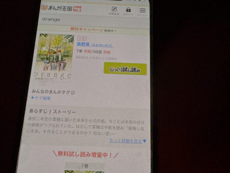 orangeはまるごと無料では読めませんが、試し読みはできます。