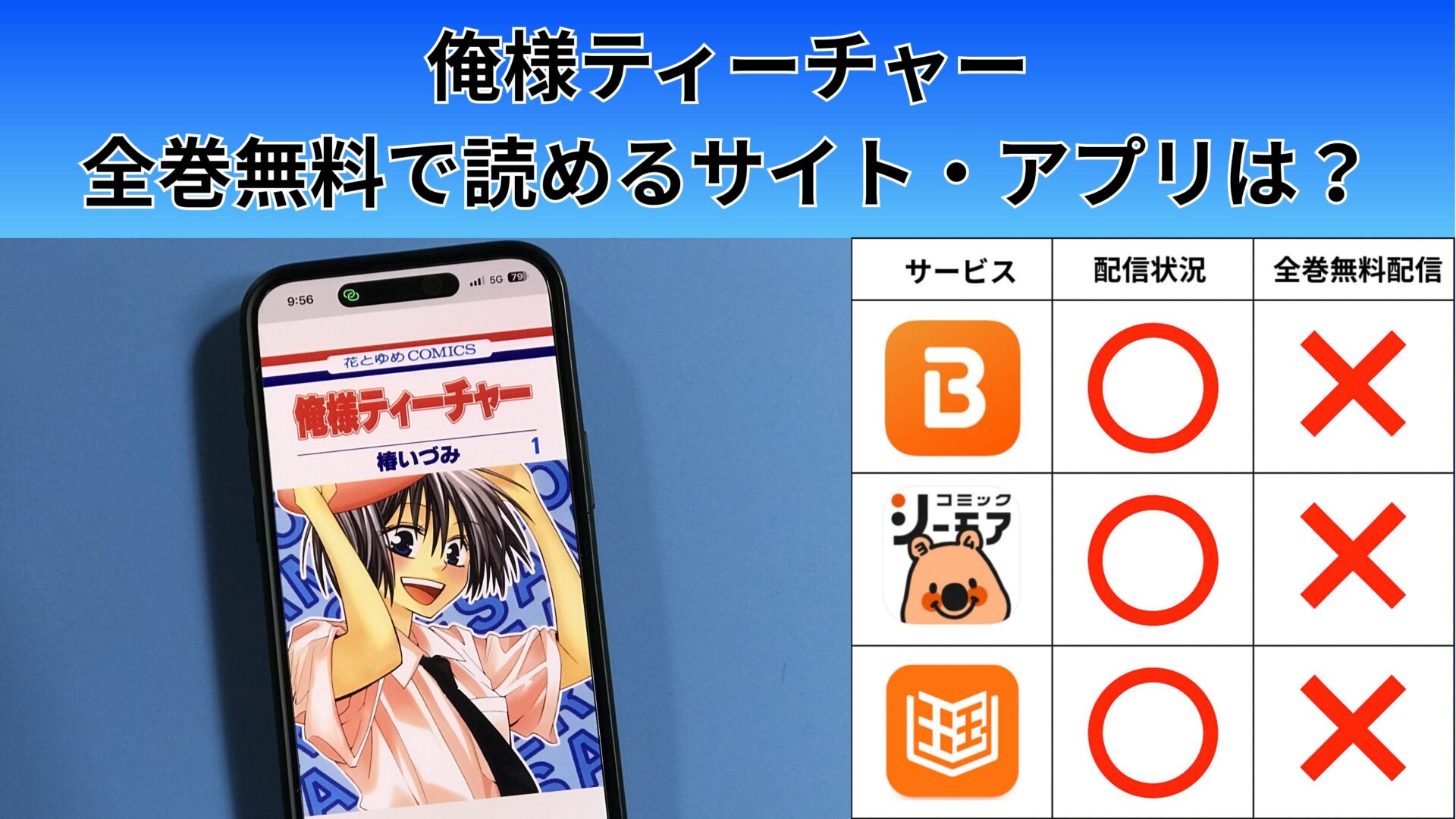 ここからは、俺様ティーチャーの漫画が無料で読めるアプリを紹介します。