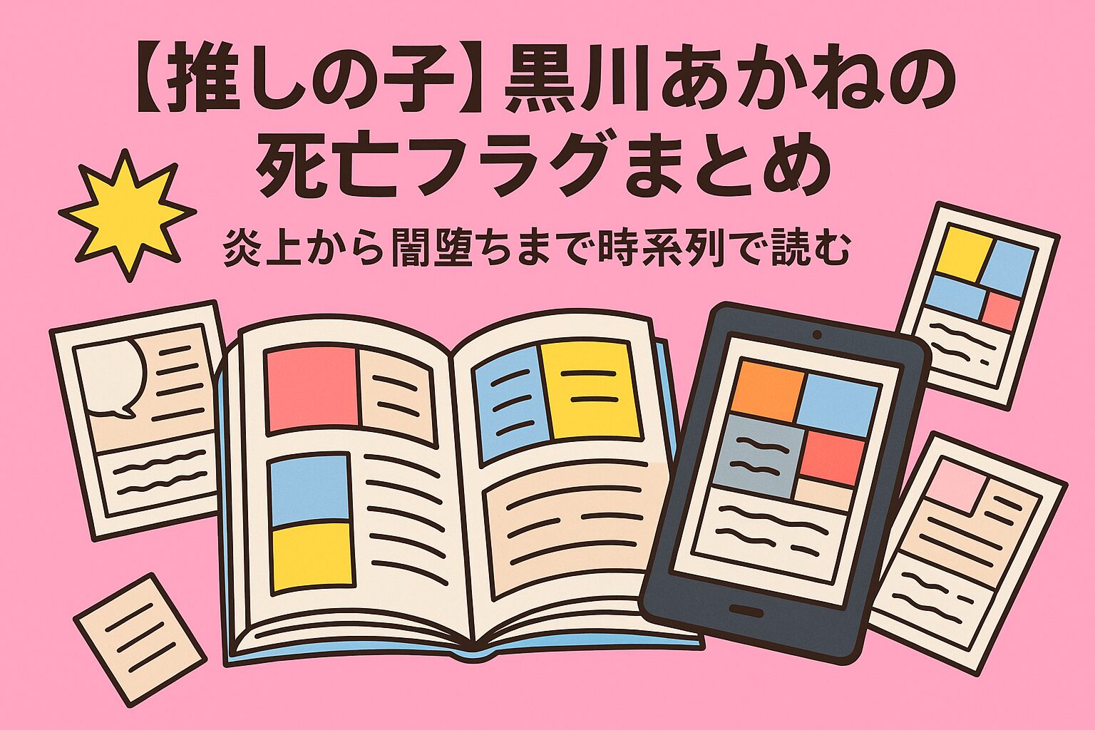 この記事では、『【推しの子】』の黒川あかねにまつわる死亡フラグについて、原作完結時点の情報を踏まえながら振り返ってきました。恋愛リアリティショーでの炎上と自傷未遂から始まり、星野アイになりきるほどの憑依型演技、そして物語の黒幕であるカミキヒカルの正体にたどり着いてしまったことなど、彼女の周りには常に死の影が付きまとっていました。