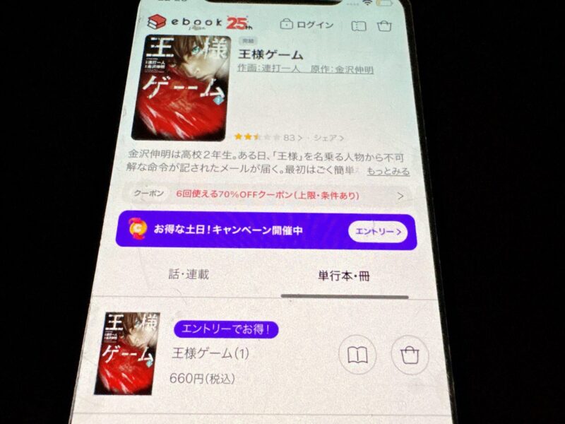 キャンペーンを利用すると、王様ゲームを割安にまとめて購入したり、1巻だけ無料で購入することが可能です。