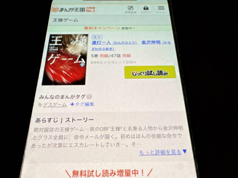 キャンペーンを利用することで一部の巻は無料で読めるため、お得に王様ゲーム漫画を全巻読むためには利用しましょう。
