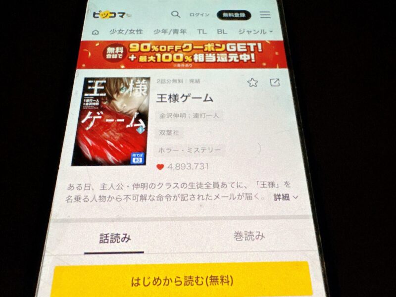 王様ゲームが、無料で読める漫画アプリを紹介します。