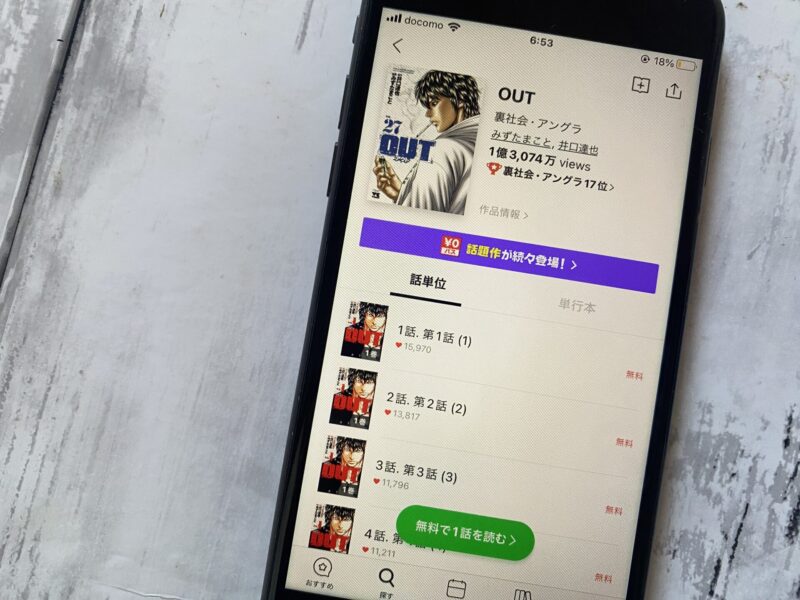 ここからは、OUTの漫画が無料で読めるアプリを紹介します。