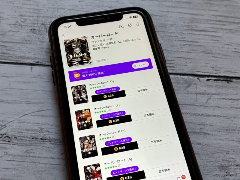 オーバーロードの漫画をお得に全巻読みたいなら、まずはこのアプリを利用するのがおすすめです。