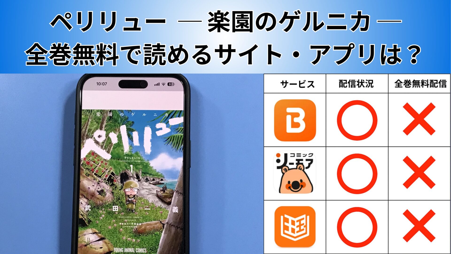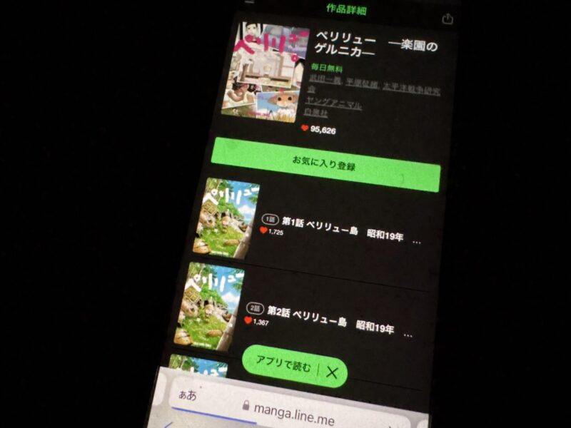 ここからは、ペリリュー ─楽園のゲルニカ─の漫画が無料で読めるアプリを紹介します。