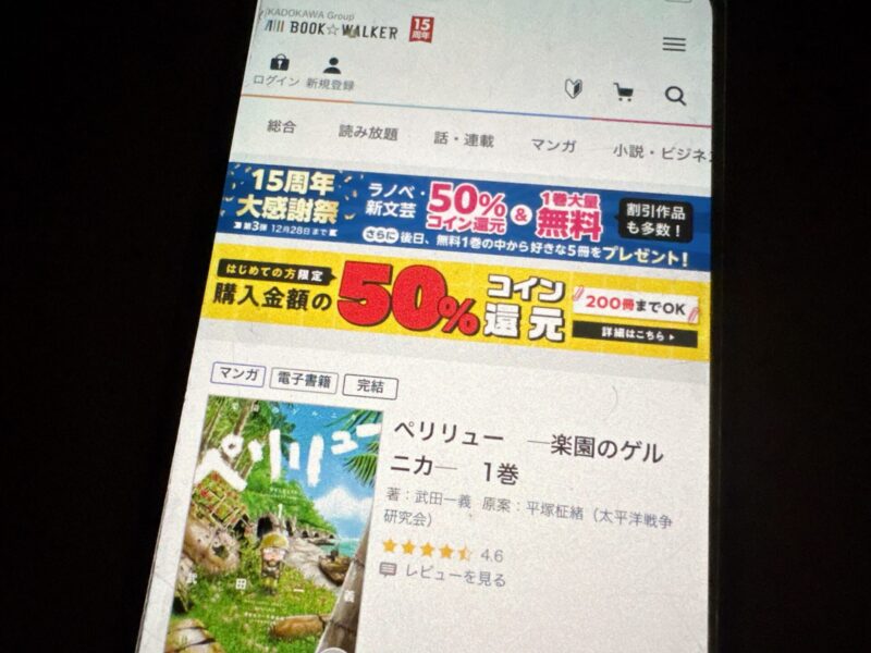 キャンペーンを利用すると、ペリリュー ─楽園のゲルニカ─を割安にまとめて購入したり、1巻だけ無料で購入することが可能です。