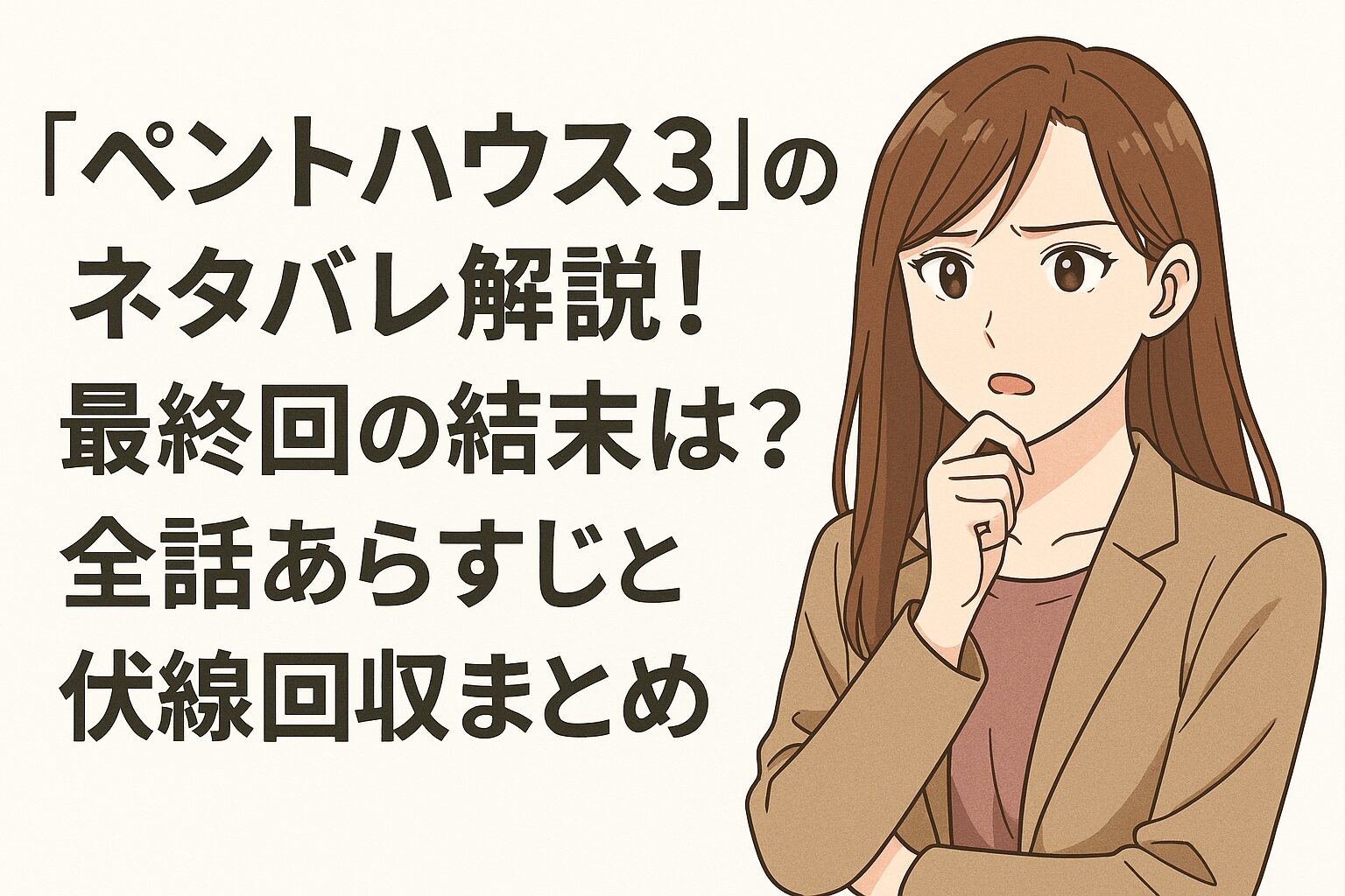 しかし、あまりの衝撃的なストーリーに「結局、最後はどうなったの?」「あの伏線はどうなったの?」と疑問が残っているかもしれません。この記事では、そんなあなたの悩みを解決すべく「ペントハウス3」の最終回の結末から各話のあらすじまで、ネタバレありで徹底解説します。