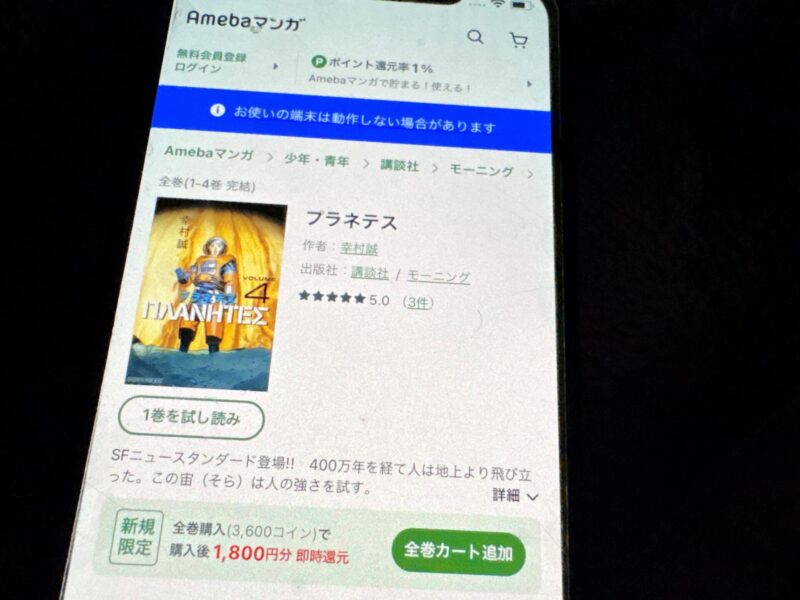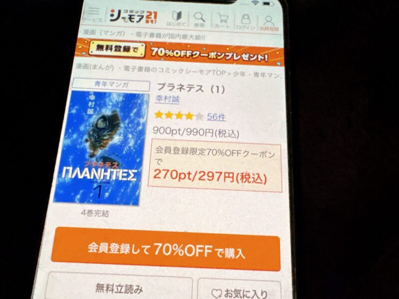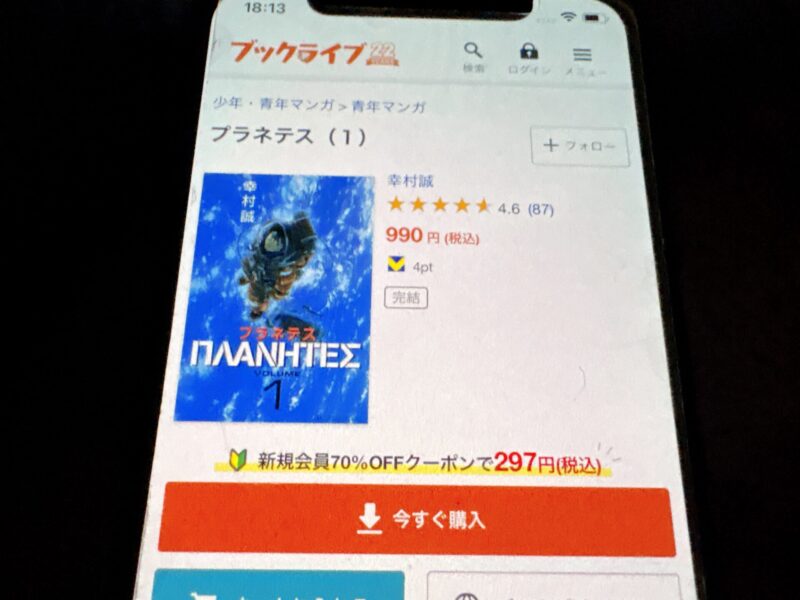 キャンペーンを利用すると、プラネテスを割安にまとめて購入したり、1巻だけ無料で購入することが可能です