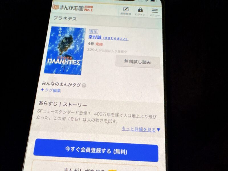 プラネテスはまるごと無料では読めませんが、試し読みはできます。